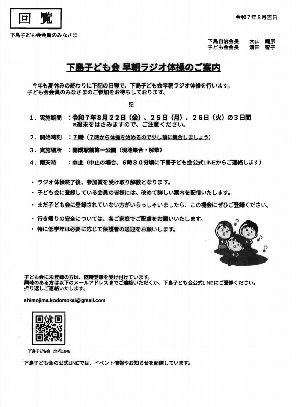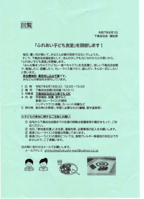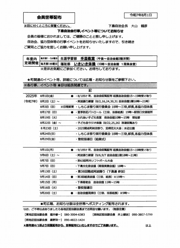 • 下島自治会行事、イベント等についてお知らせ令和7年8月